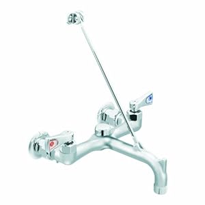 The two-handle service sink faucet is designed for ease of use. This faucet features lever style handles with hot and cold color indicators, and brass construction with chrome plated finish for a bright, highly reflective, cool grey metallic look. There is a garden hose threaded spout and an integral vacuum-breaker on this faucet. It is equipped with 1/2-Inch IPS eccentric connections, service stops and an unrestricted flow. The ceramic dis... Read More...
